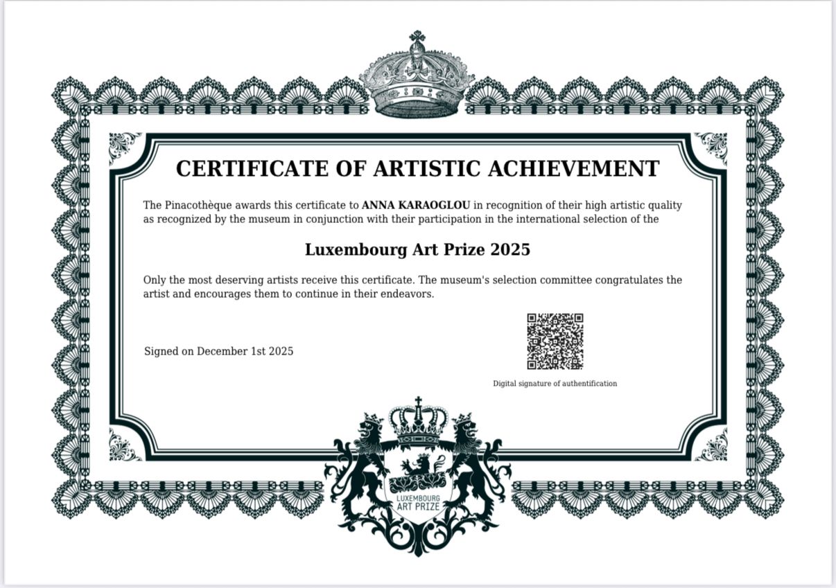 “Honored to receive this certificate from the Luxembourg Art Prize 2025. Grateful for this recognition” AK.